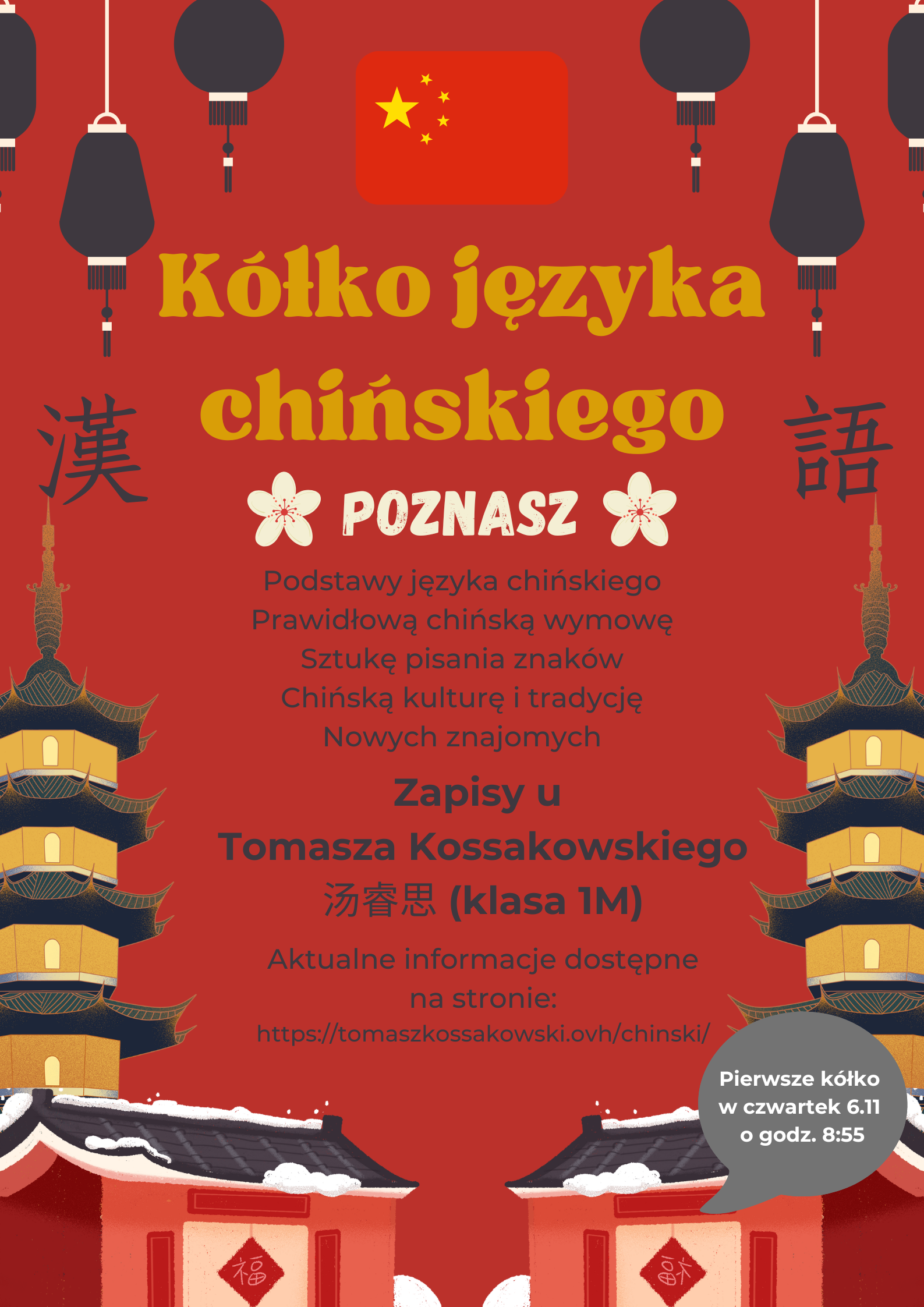 Interesuje Cię język chiński? Fascynuje Cię Daleki Wschód i chcesz poznać świat jednej z najstarszych cywilizacji? Dołącz do kółka języka chińskiego i wkrocz w świat hanzi, tonalnej wymowy, tradycji i współczesnej kultury Państwa Środka.